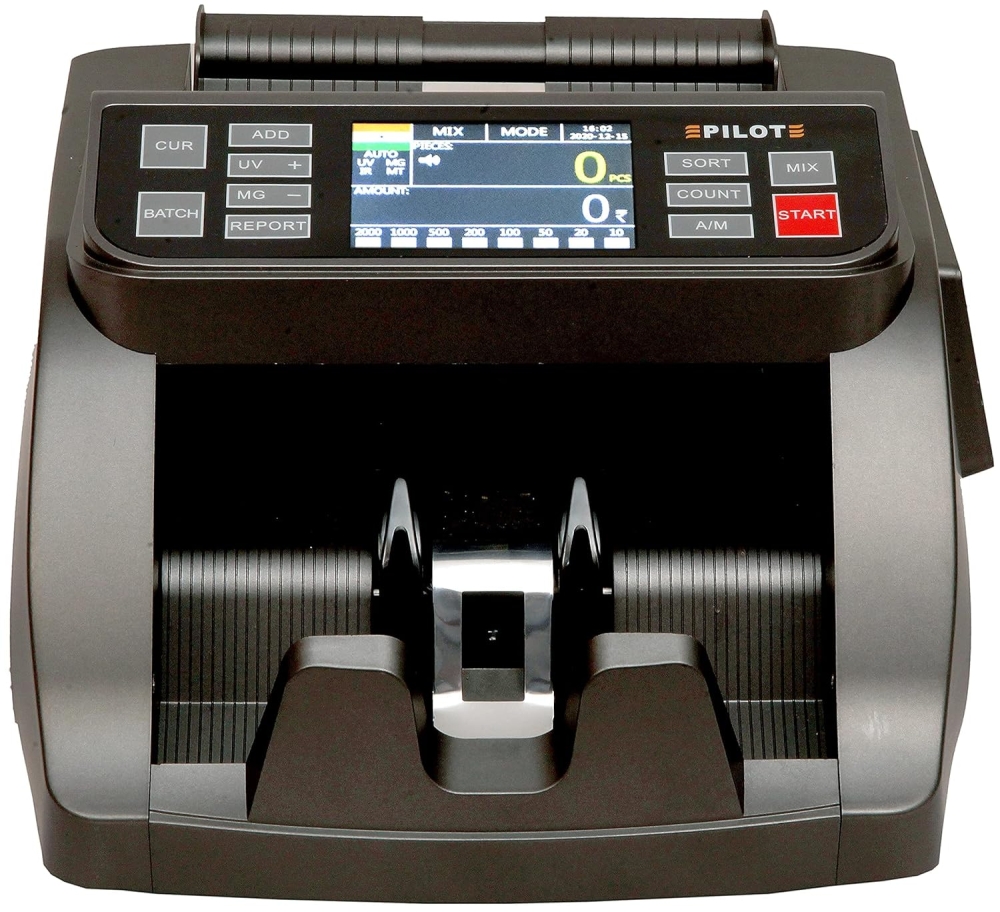 The PILOT CV-70UV/MG/IR comes with a dual screen display; front TFT color screen & side LED Screen, auto start/stop, mixed note value counting, clearing, batching, adding & self-examination functions. IR (Infrared Ray), UV (Ultraviolet) and MG (Magnetic) sensors automatically identify and detect fake notes, double notes and half notes.