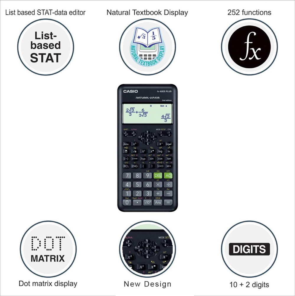 Redesigned ES PLUS series calculators featuring easy-to-understand Natural Textbook Display, Non-Programmable Scientific Calculator with 252 Functions